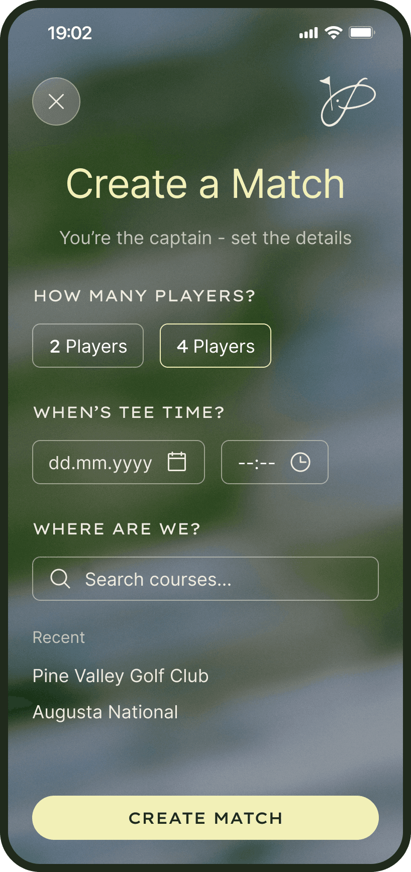 We match by tempo, vibe, and availability — not just handicap. Tell us how you like to play, when you’re free, and a few preferences; our system pairs you with people who fit your style.