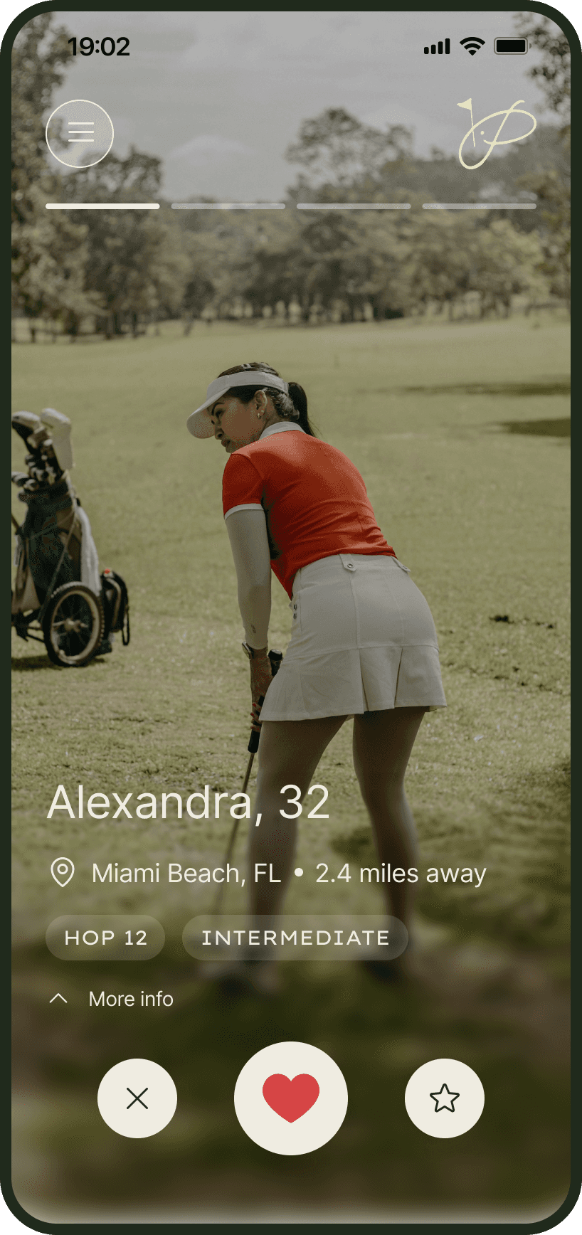 Parlay lets you share how you play, how you like your rounds to feel, and what you're looking for—new golf friends, a regular foursome, networking, or just good company on a Sunday. In return, it surfaces people who match your pace, your vibe, and your intentions for the day.